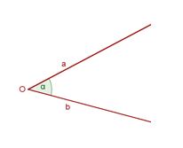 Un ángulo es la región del plano comprendida entre dos semirrectas con origen común. A las semirrectas se las llama lados y al origen común vértice.