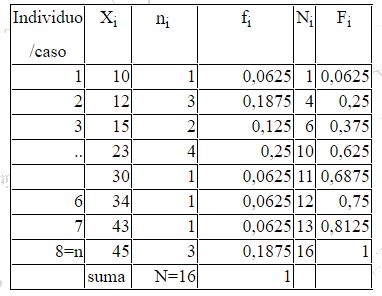 ni =frecuencias absolutas , número de individuos que poseen valor de la variable igual a Xi