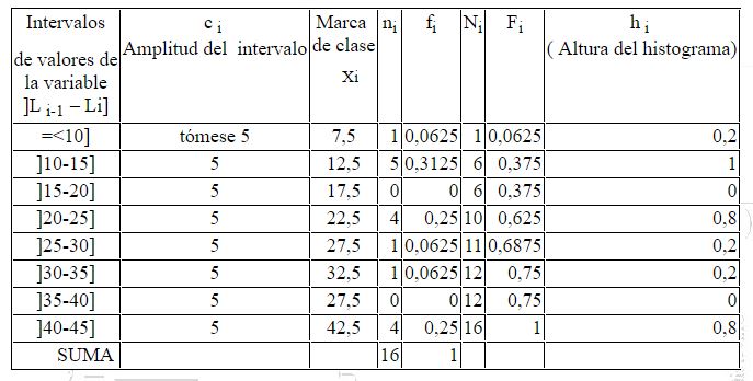 hi = altura del histograma/densidad de frecuencia ,frecuencia repartida en amplitud de intervalo , hi = ni / ci